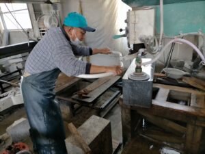 棹石製作です。規定サイズにカット後本磨き仕上げです。