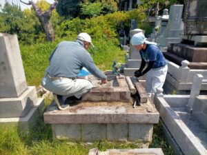 お精抜きに立ち合いさせていただき、そのままお墓の撤去作業に移りました。