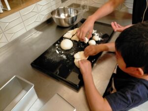 砂利なしの土とセメントのみでモルタルを作り雑草が生えないように隙間なく入れていきます。
