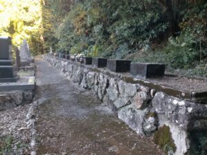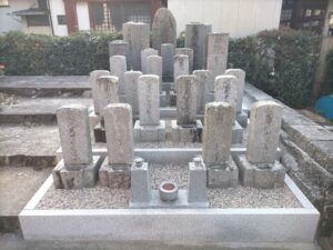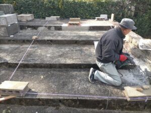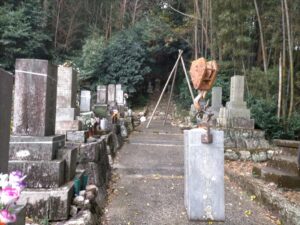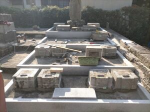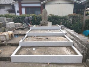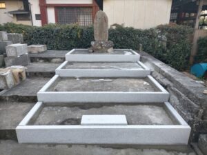 指定された墓石を寺院下段の場所に延石で化粧した場所に設置しなおすという工事です。