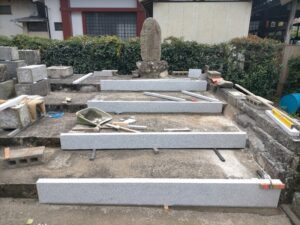 延石の設置が出来ました。数日置いてから墓石本体の設置をしていきます。