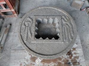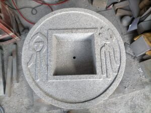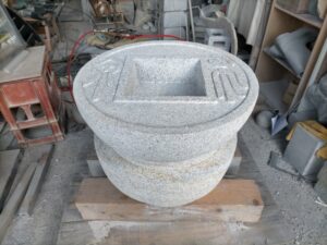布泉手水鉢の製作です。土台と手水鉢の2つ製作します。丸形には社長に作業してもらいその他加工は私が担当しました。