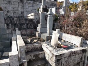 八事霊園は狭い道や、階段、段差が多く点在しており工事するのに苦労することがあります。
