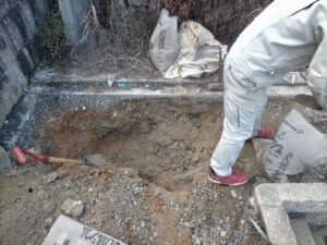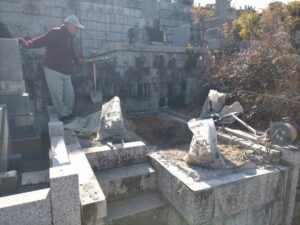 霊園事務所に基礎を除去できたか証拠写真を提出する必要がある為、ひたすら基礎撤去と土を掘り出して大変な作業でした。