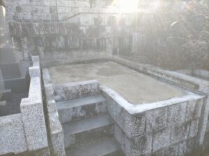 墓石下の基礎がしっかりしており、八事霊園の規定で基礎は30㎝で良いところ、50㎝ほど深くセメントを打設していた為