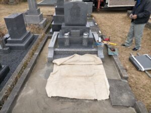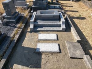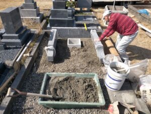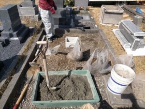 撤去後、墓石の巻石と土台を作る為の作業を進めていきます。