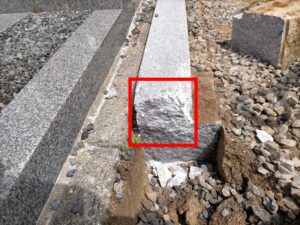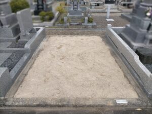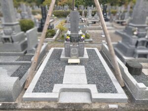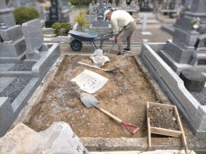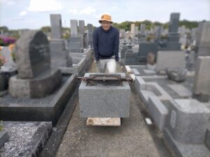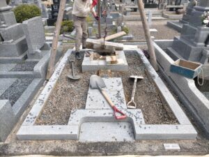 今回の墓石は岡崎市産の宇寿石を使用して製作された墓石でした。あとは整地していきます。
