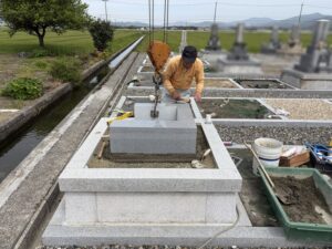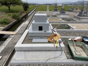 本日は滋賀県長浜市の町内墓地にて9寸角和型墓石の建立作業をしてきたのでご紹介させていただきます。