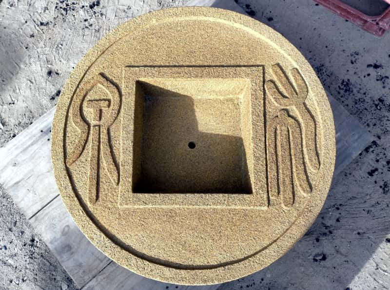 石臼をリメイクして、屋外に設置する石の流し台を作成いたしました。
