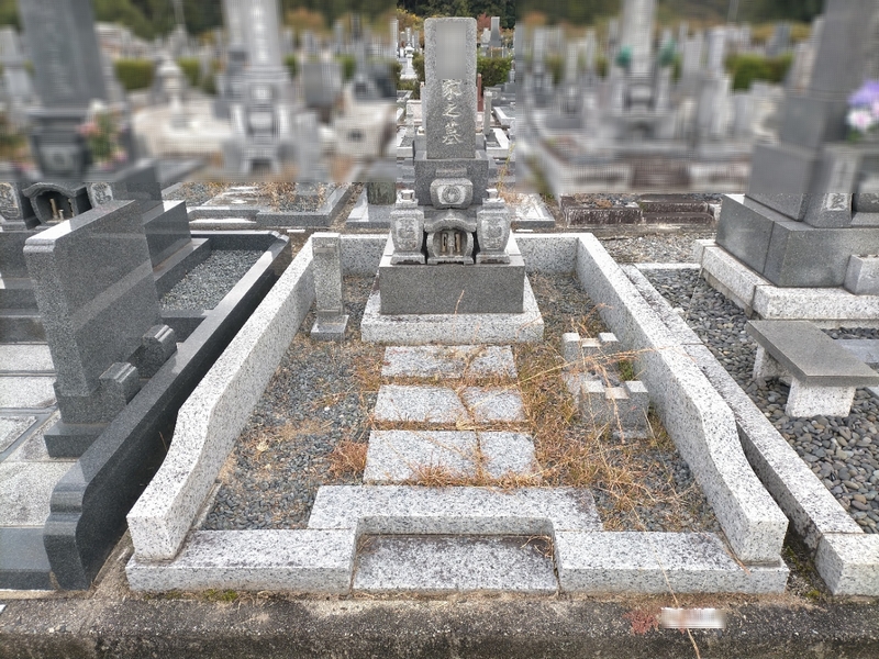 こちらは外柵撤去の事例です。玉垣や羽目石を撤去することで開放的なお墓になりました。併せて雑草対策を行いました。