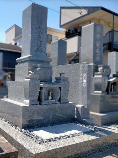 西尾市貝吹墓地/8寸角DX墓石舞台付き(愛媛県産大島石)